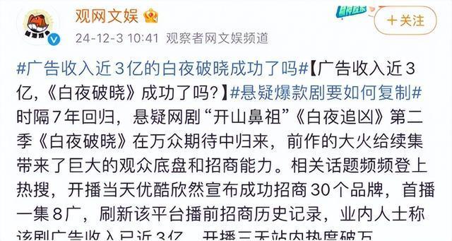 2023年末至2024年初,《白夜破晓》的热播,再次将潘粤明推向了事业的高峰。